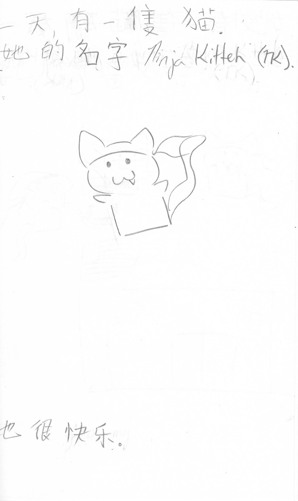 After done copying, we had students raise their hands and told us their answers in the blanks. After we generated a story on the whiteboard as a whole class, we translated the story, using TPRS circling questions to made sure everyone understand the story. We repeated this for 3 times and then students were given 7 minutes to fill in the blanks to create a story. Later we shared students' work and had students translate to English to check the comprehension.